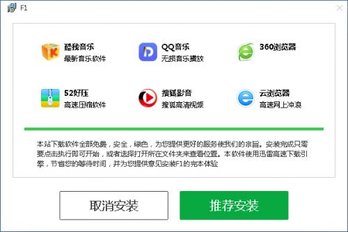 下载器界面 如上图,下载器界面会诱导用户点击“推荐安装”按钮,且未设有用于取消软件推广的勾选项。在点击“推荐安装”按钮后,除上图已给出的软件外,还会静默推广安装更多流氓软件,如:风云PDF阅读器、高效截图软件等。下载器部分推广配置,如下图所示: